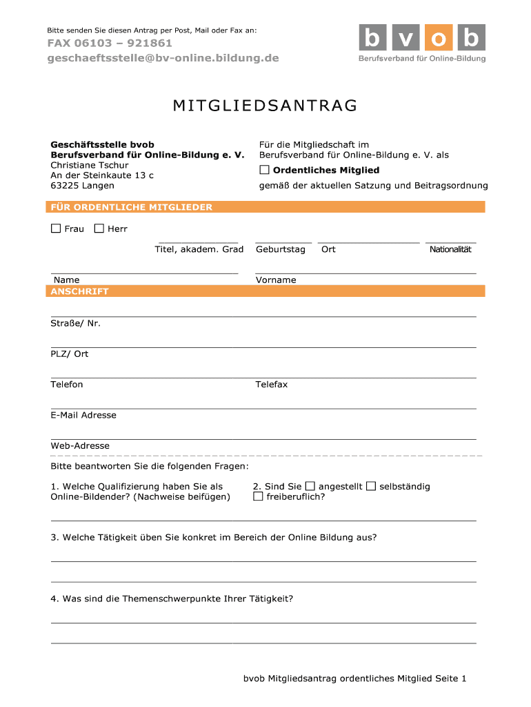 Fill out your bvob berufsverband fr online-bildung online with pdfFiller!