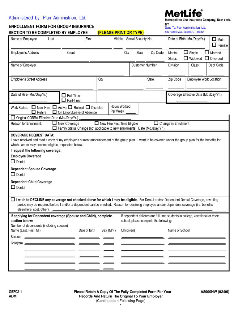 This enrollment form is designed for employees working for companies that offer group insurance plans. Eligibility requirements may vary by employer, but typically include full-time status or a waiting period for newly hired employees. It is crucial for eligible employees to submit their forms promptly to avoid any gaps in coverage.