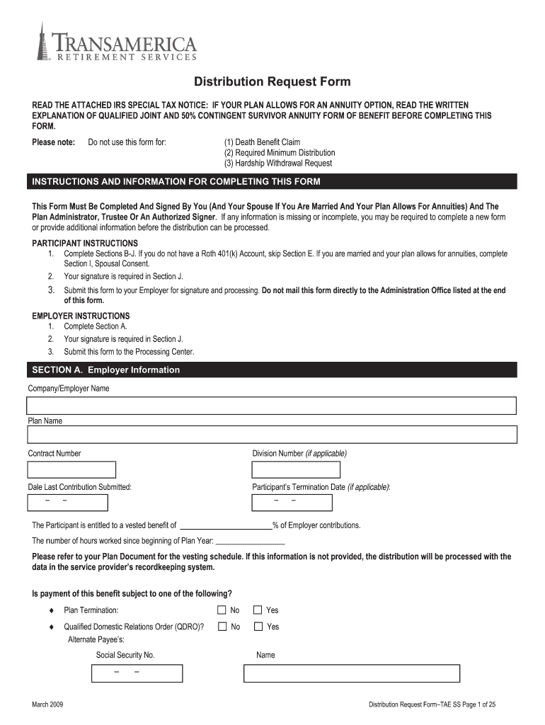 Generally, the Distribution Request Form may not require additional documents; however, participants should verify with their employer or plan administrator if any specific documents are needed, such as identification or proof of hardship.