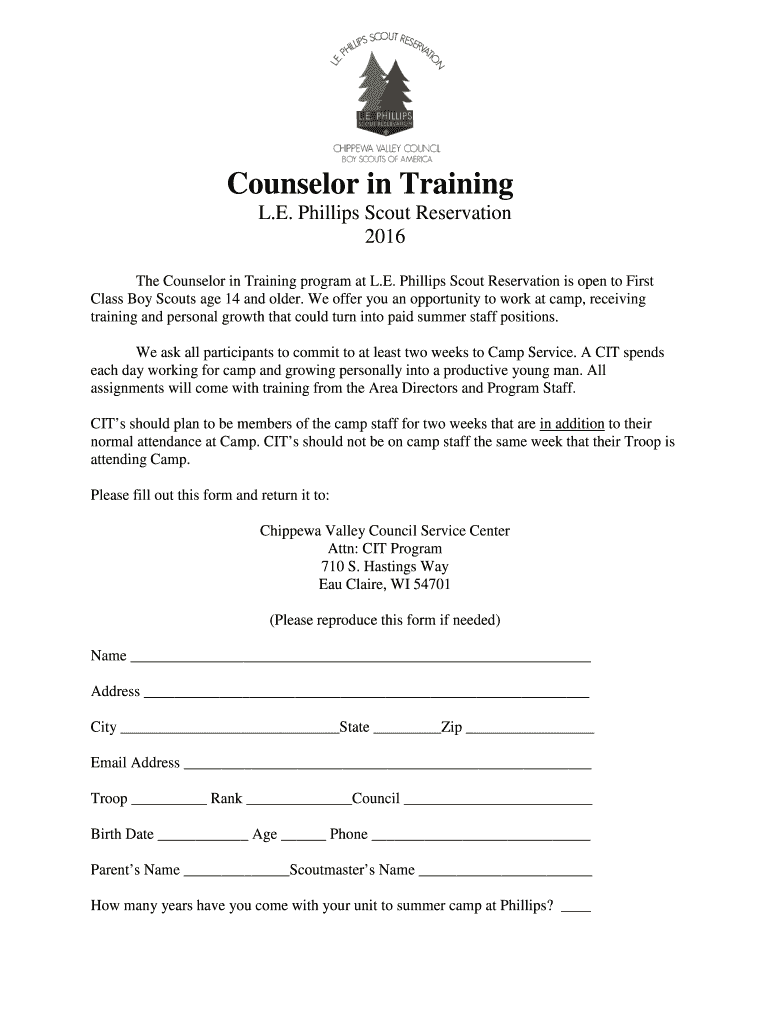 Get the free The Counselor in Training program at L - chattahoochee-bsa