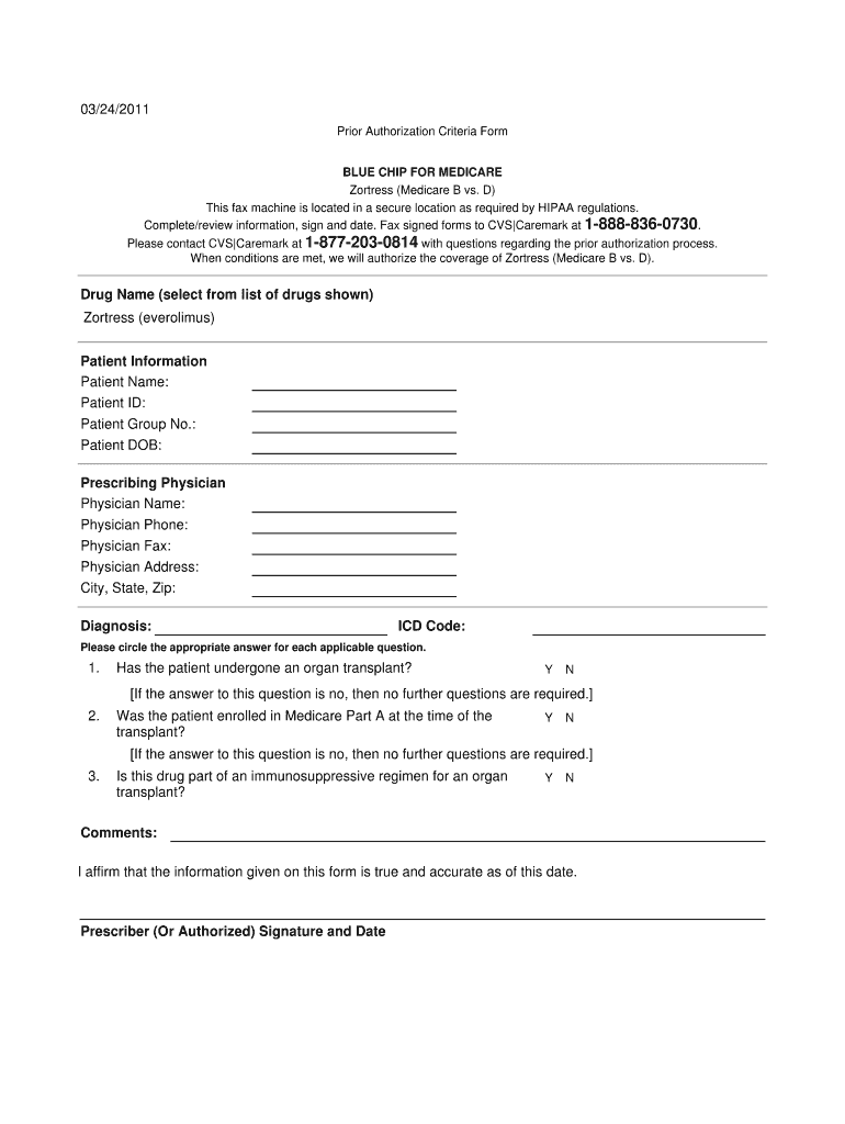 9.Fax the signed document to CVS|Caremark as instructed to initiate the authorization process for Zortress coverage.