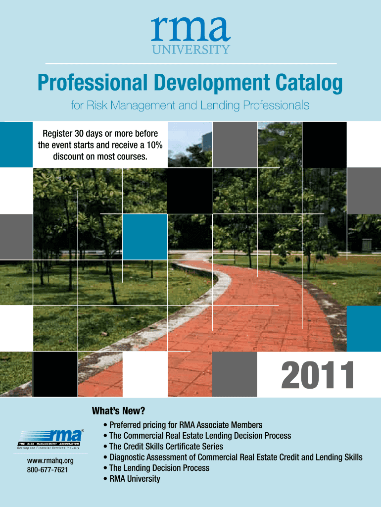 Professional Development Catalog for Risk Management and Lending Professionals Register 30 days or more before the event starts and receive a 10% discount on most courses. 2011 What's New? www.rmahq.org