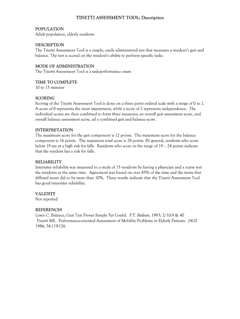 The Dinette Assessment Tool is a simple, easily administered test that measures a residents gait and