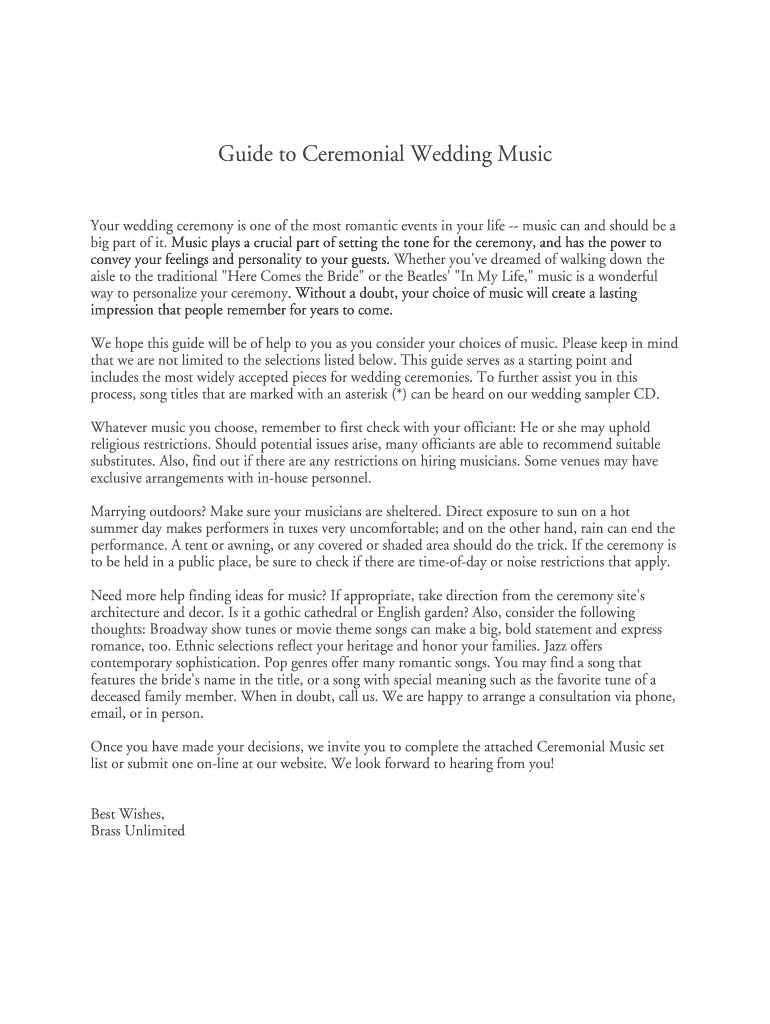 Get the free Guide to Ceremonial Wedding Music - Brass Unlimited