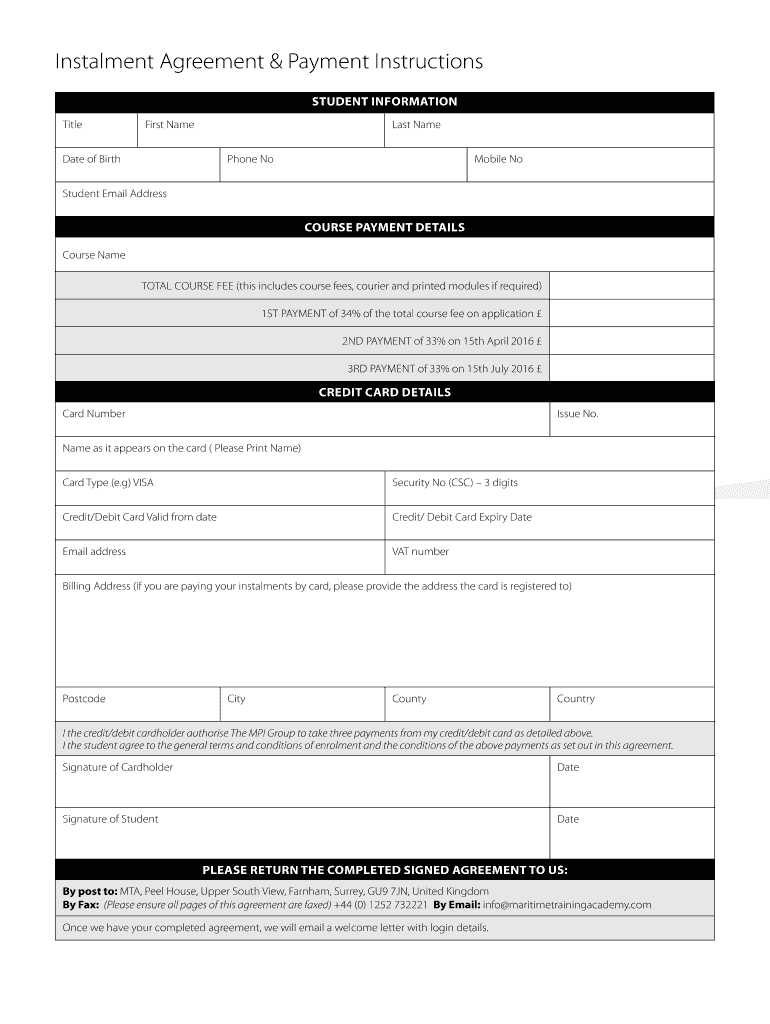 Having chosen to spread your study costs with our interest free payment plan we aim to make it as easy as possible for you to get started on your course.