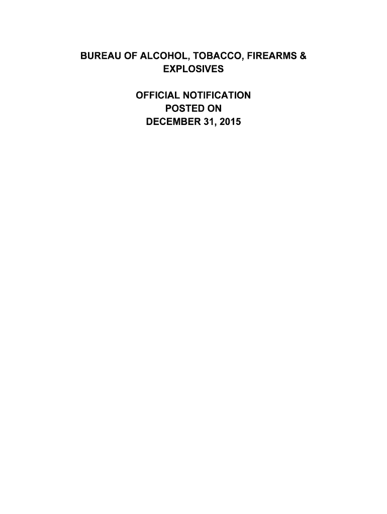 BUREAU OF ALCOHOL, TOBACCO, FIREARMS & EXPLOSIVES OFFICIAL NOTIFICATION POSTED ON DECEMBER 31, 2015, ATF OFFICIAL NOTIFICATION POSTED ON DECEMBER 31, 2015, LEGAL NOTICE ATTENTION The Bureau of Alcohol,