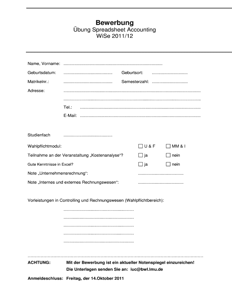 Fill out your bewerbung - iucbwluni-muenchende online with pdfFiller!