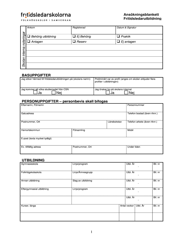 1 BASUPPGIFTER Jag s KER hr med till fritidsledarutbildningen p (slogans name): profiler i utbildningen) Prelim in rt var av profit (ages on solar cruder flora