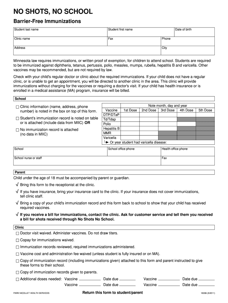 PhoneAddressCityMinnesota law requires immunizations, or written proof of exemption, for