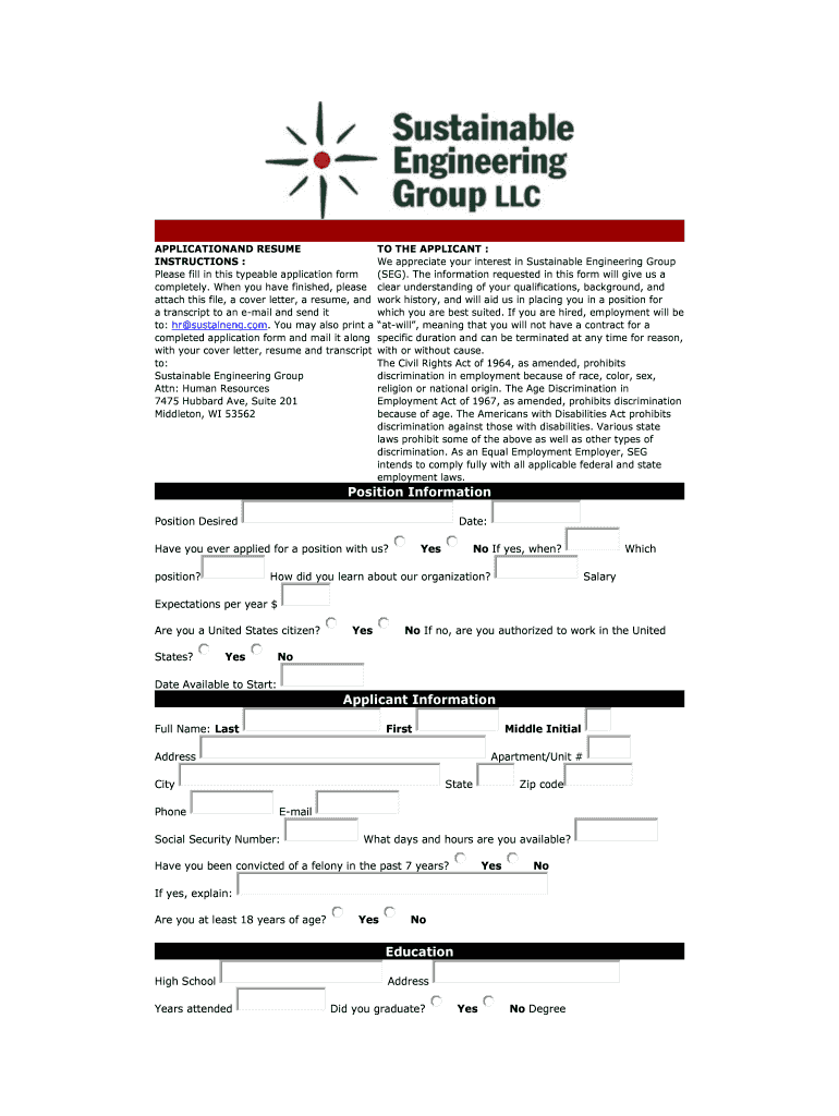 APPLICATION AND RESUME INSTRUCTIONS : Please fill in this typeable application form completely. When you have finished, please attach this file, a cover letter, a resume, and a transcript to an email
