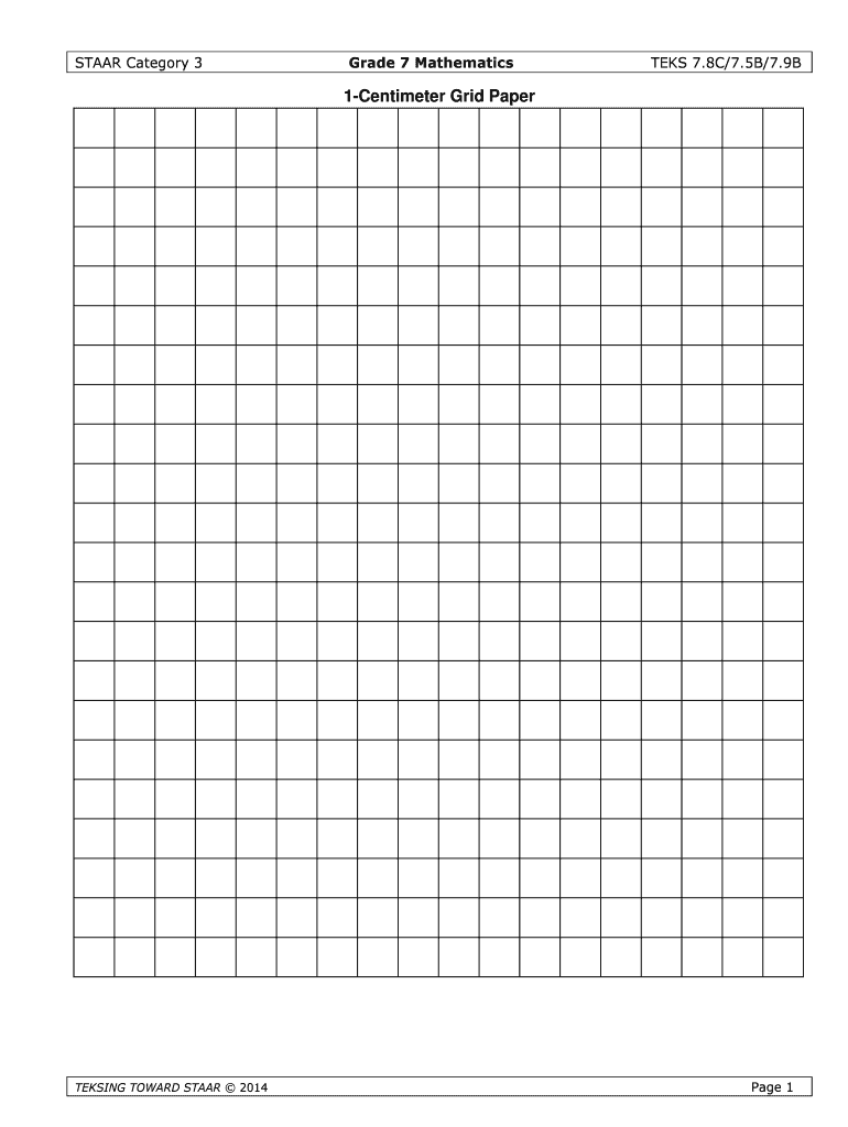 STAR Category 3 Grade 7 Mathematics TENS 7.8C/7.5B/7.9B 1Centimeter Grid Paper TEASING TOWARD STAR 2014-Page 1-STAR Category 3 Grade 7 Mathematics TENS 7.8C/7.5B/7.9B 1 Centimeter Grid Paper 2 TEASING