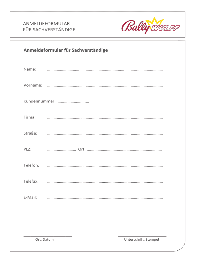 Get the free ANMELDEFORMULAR FR SACHVERSTNDIGE - ballywulff
