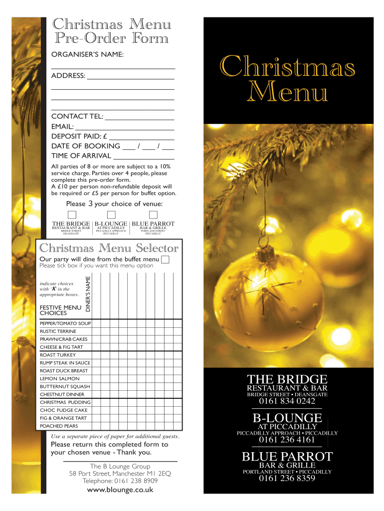 Get the free Christmas Menu Pre-Order Form Christmas Menu - blounge co