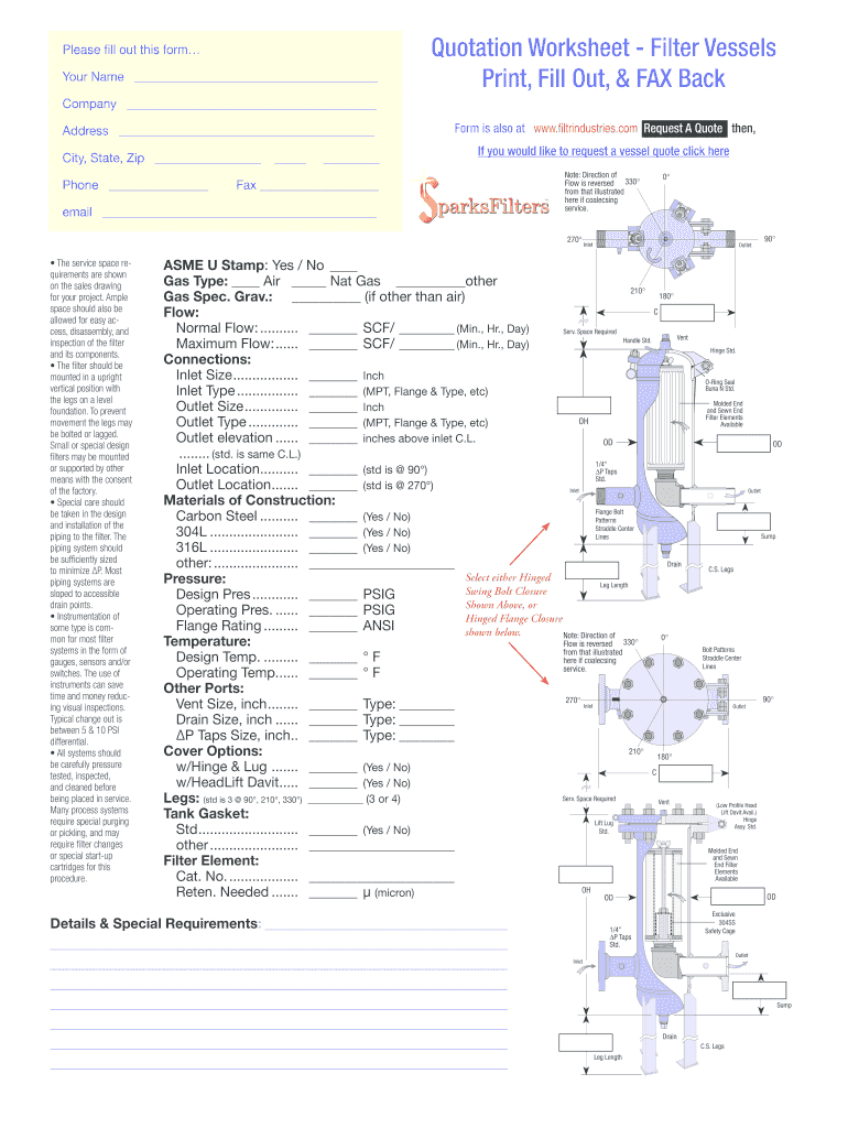 Please fill out this form Your Name Quotation Worksheet Filter Vessels Print, Fill Out, & FAX Back Company Address City, State, Zip Phone Form is also at www.filtrindustries.com Request A Quote then,