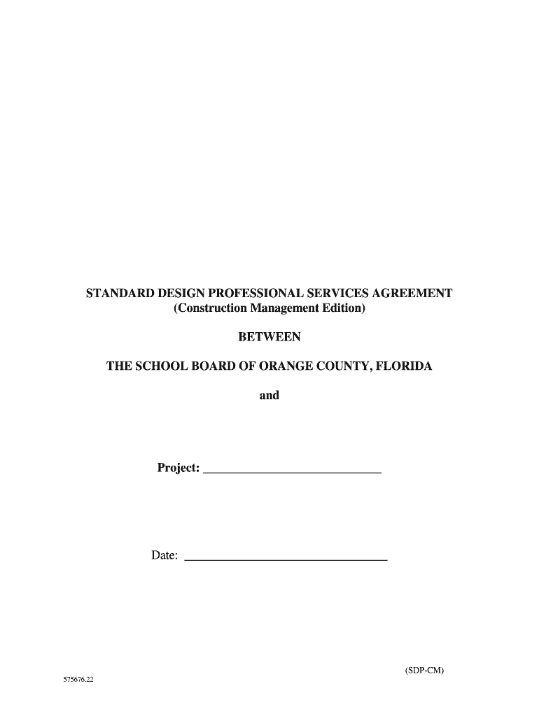 STANDARD DESIGN PROFESSIONAL SERVICES AGREEMENT (Construction Management Edition) BETWEEN THE SCHOOL BOARD OF ORANGE COUNTY, FLORIDA and Project: Date: (SDP-CM) 575676.22 STANDARD DESIGN PROFESSIONAL