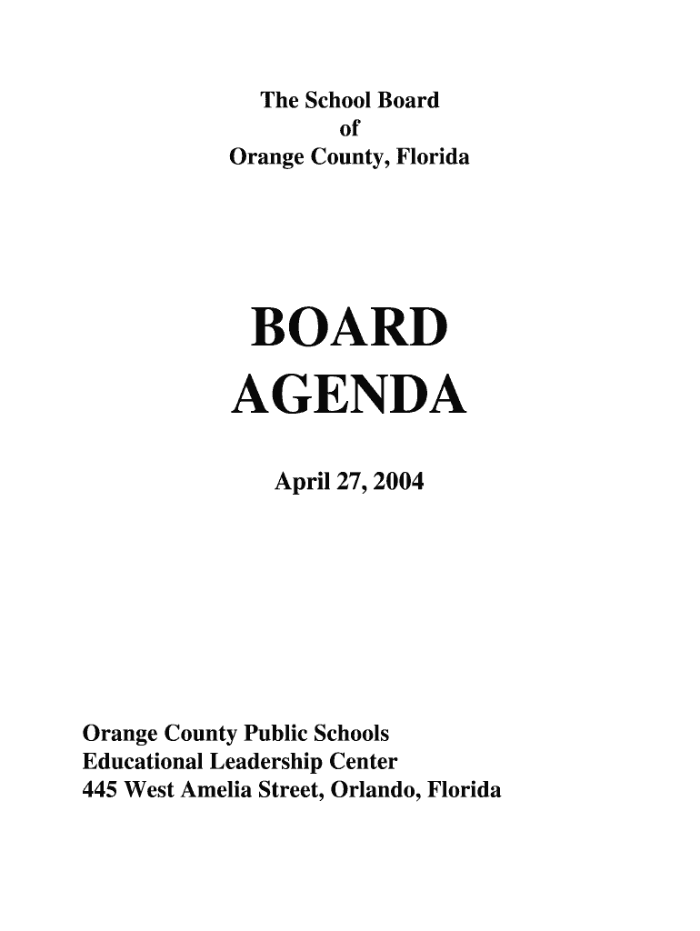 Get the free The School Board of Orange County, Florida BOARD AGENDA April 27, 2004 Orange County...