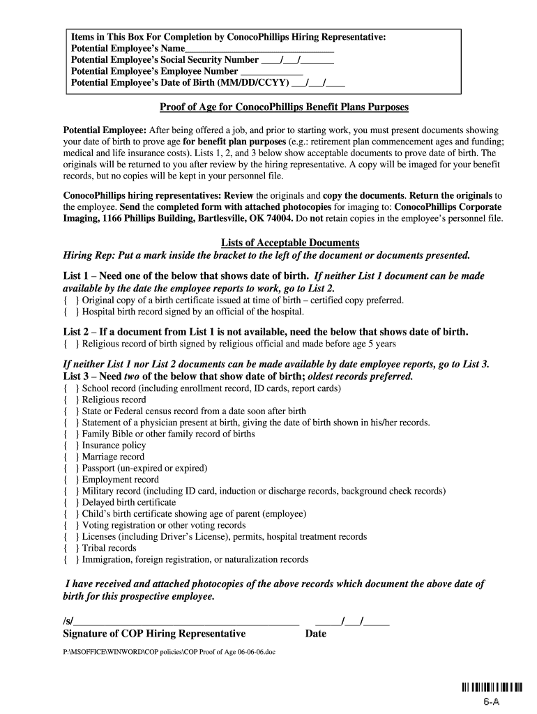 Get the free ConocoPhillips Proof of Age Form
