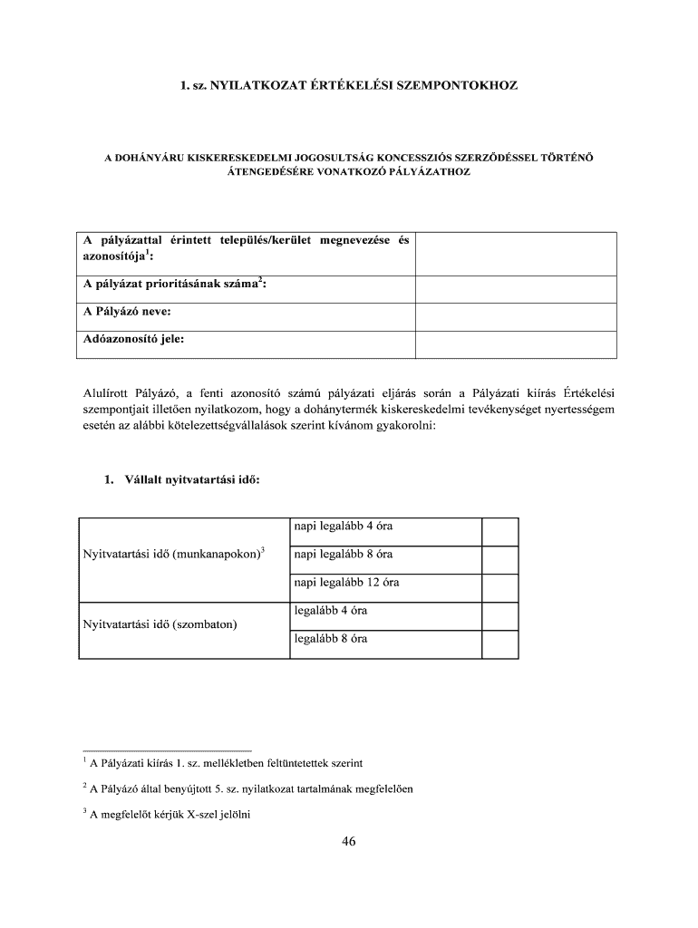 46 1. SZ. nyilatkozat rt key is szempontokhoz a DOH NY Ru kiskereskedelmi consults g koncesszi s zero’d SSE t rt n? Tended s re donation ...