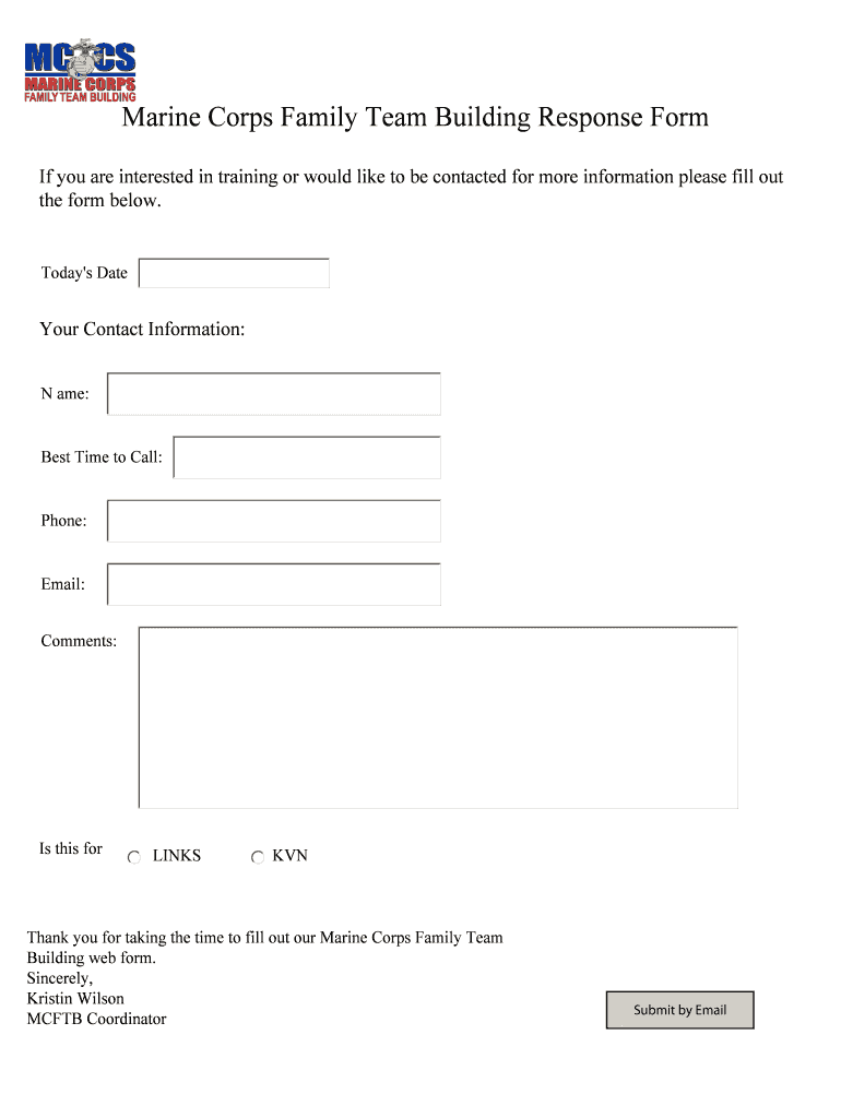 Marine Corps Family Team Building Response Form If you are interested in training or would like to be contacted for more information please fill out the form below. Today's Date Your Contact Information: