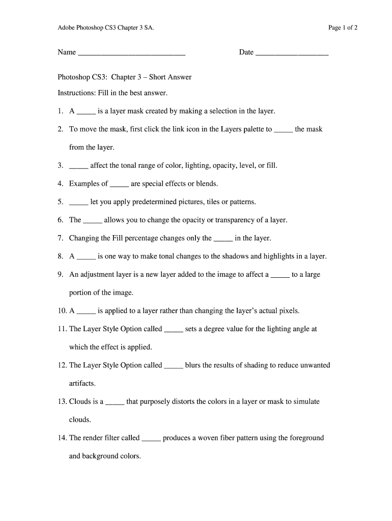 Get the free Name Date Photoshop CS3: Chapter 3 Short Answer