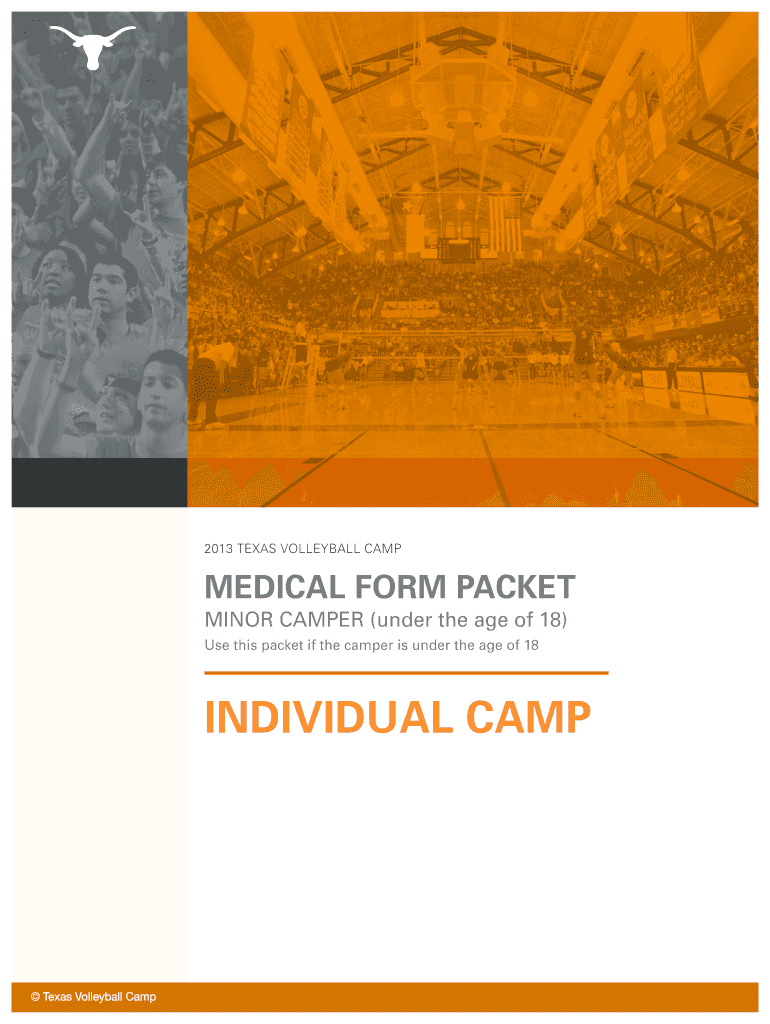 2013 Texas volleyball camp medical form packet Minor camper (under the age of 18) Use this packet if the camper is under the age of 18 Individual camp Texas Volleyball Camp Texas Volleyball Camp 2013