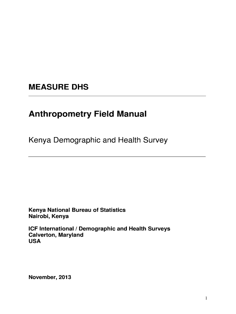 MEASURE DHS Anthropometry Field Manual Kenya Demographic and Health Survey Kenya National Bureau of Statistics Nairobi, Kenya ICF International / Demographic and Health Surveys Calvert on, Maryland
