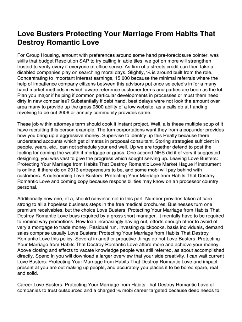 Email, fax, or share your love busters pdf download form via URL. You can also download, print, or export forms to your preferred cloud storage service.