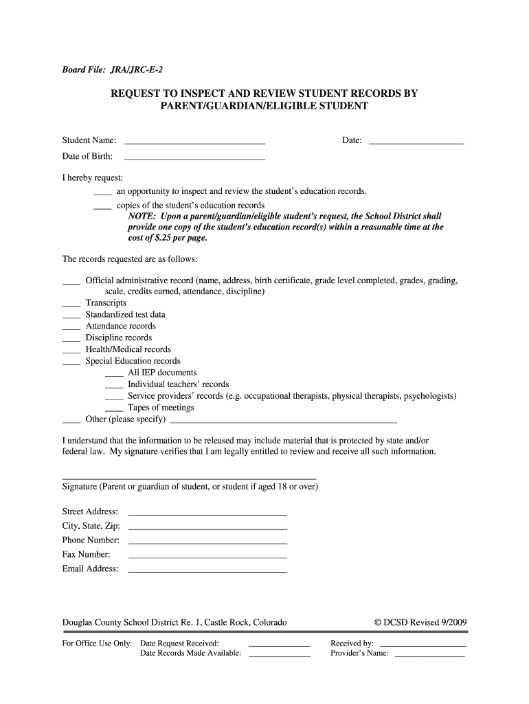 Get the free Request to Inspect and Review Student Records
