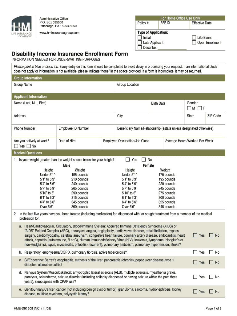 Administrative Office P.O. Box 535050 Pittsburgh, PA 15253-5050 For Home Office Use Only Effective Date RFP ID Policy # Type of Application: Initial Late Applicant Describe: www.hminsurancegroup.com