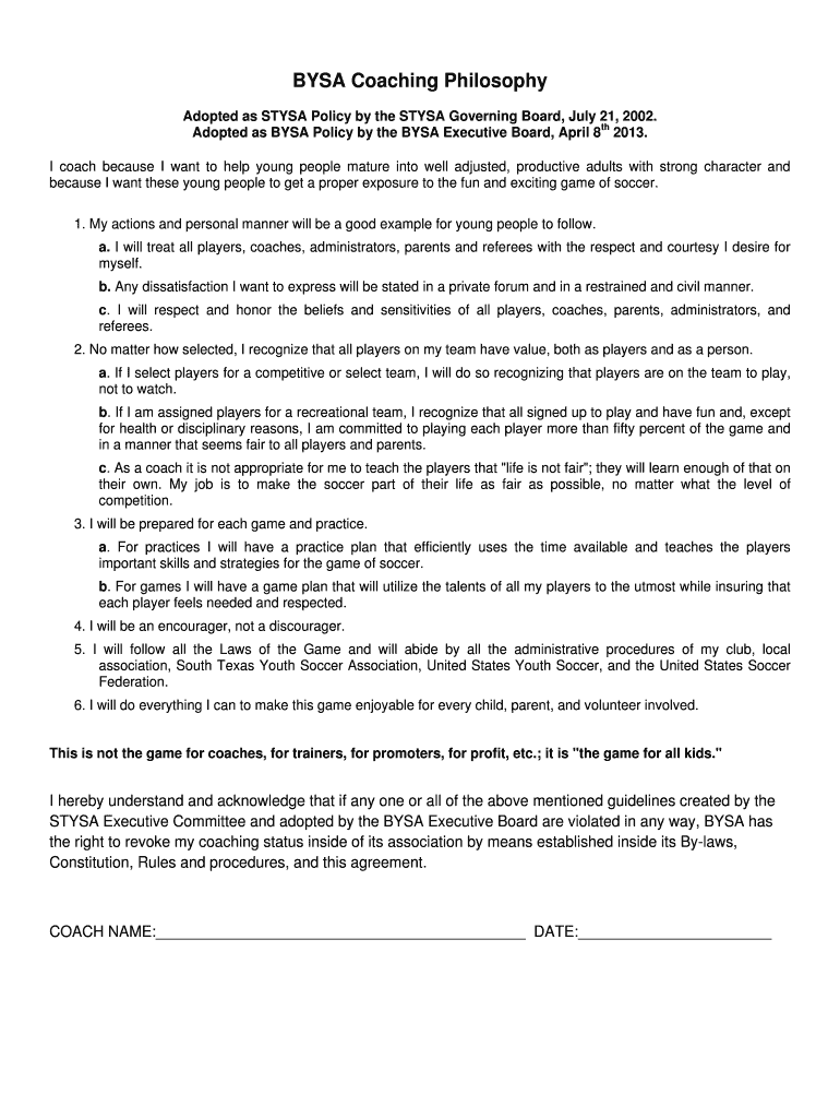 How to fill out bysa coaching philosophy