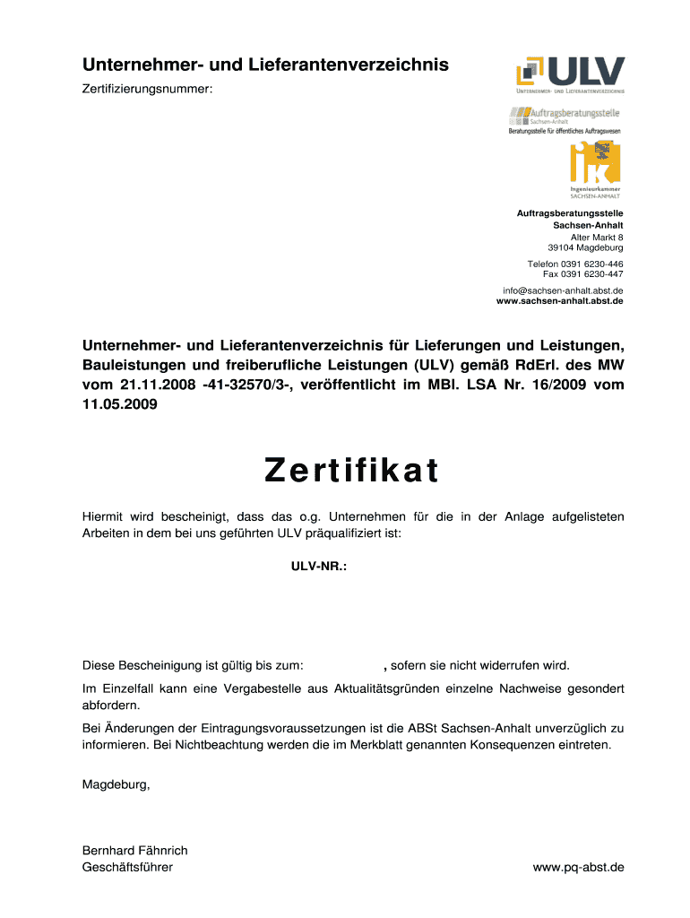 Get the free Ulv zertifikat lang vof - ABST Sachsen-Anhalt - sachsen-anhalt abst