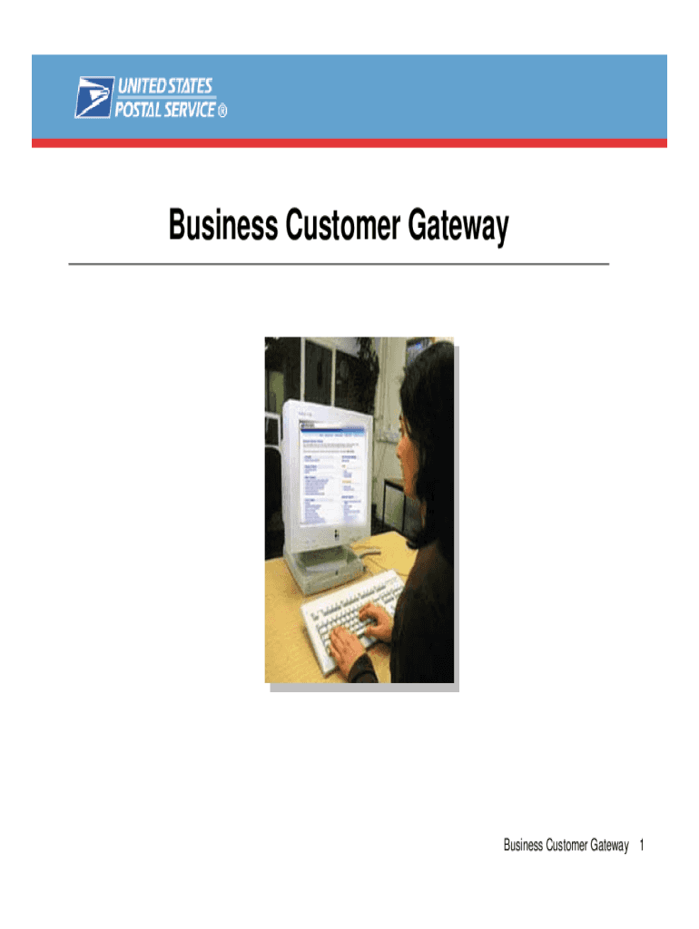 Business Customer GatewayBusiness Customer Gateway1Table of Contents Highlights Basics Login and New Accounts Your Account Settings Business Services Accounts Design & Prepare Mail & Transport Track