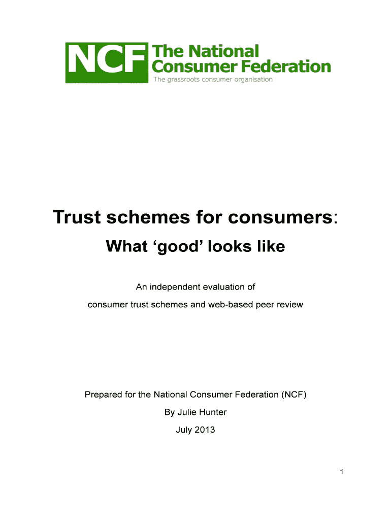 Trust schemes for consumers: What good looks like An independent evaluation of consumer trust schemes and web based peer review Prepared for the National Consumer Federation (NFC) By Julie Hunter