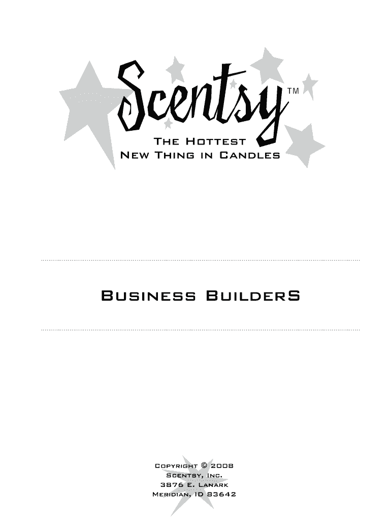 Business Builders Copyright 2008 Scents, Inc. 3876 E. La nark Meridian, ID 83642 Booking Coupon Name of Hostess Holding the Sentiment: Name of Person Booking a Sentiment: Scheduled Date of Booked