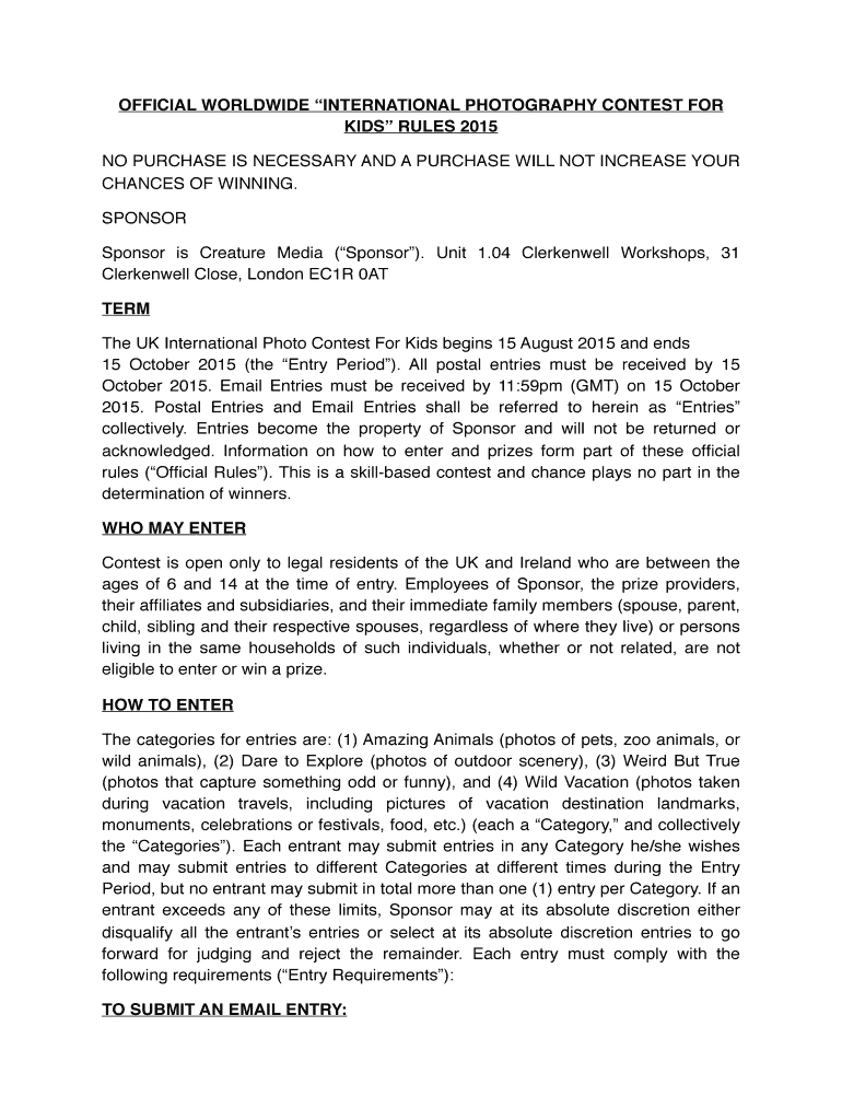 OFFICIAL WORLDWIDE INTERNATIONAL PHOTOGRAPHY CONTEST FOR