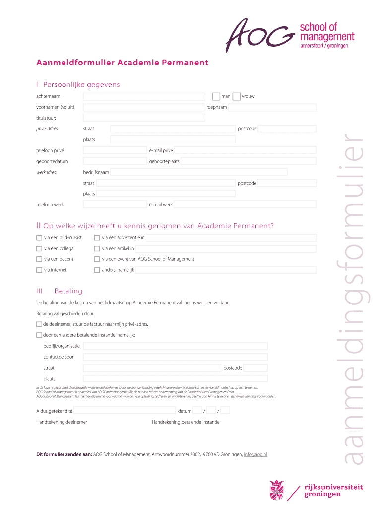 Get the free Werkadres: aanmeldingsformulier - aog.nl