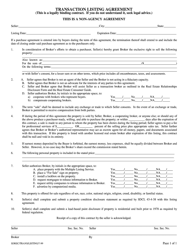 This type of listing agreement ensures that sellers are well-informed and legally protected while engaging in property transactions. Understanding the basic terms of the Transaction Listing Agreement is vital for securing a smooth sale process.