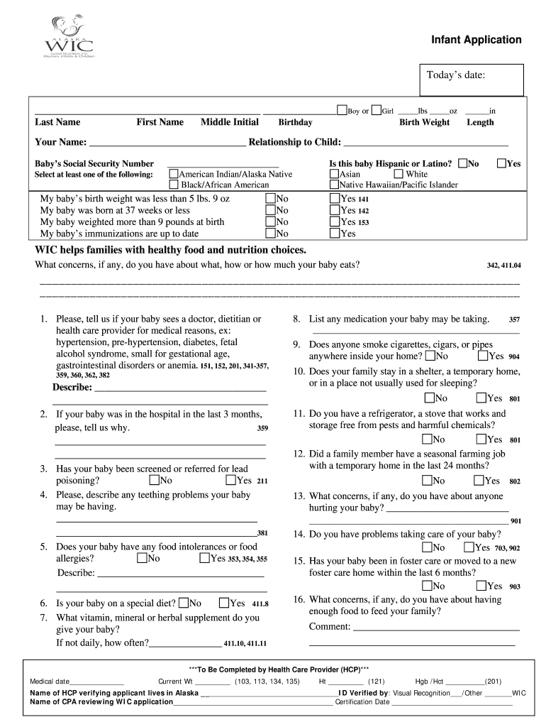 The Infant Application Form is a healthcare document used by parents or guardians to provide essential health and nutritional information about their infant for the WIC program eligibility assessment.