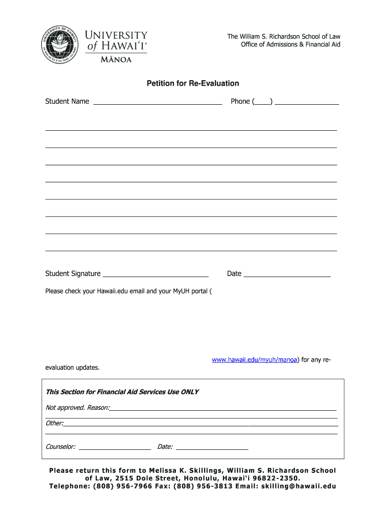 Get the free Petition for Re-Evaluation - law hawaii