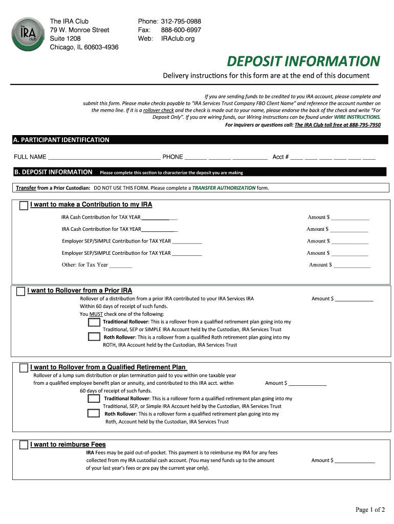 Field-by-Field Instructions for the IRA Deposit Information Form