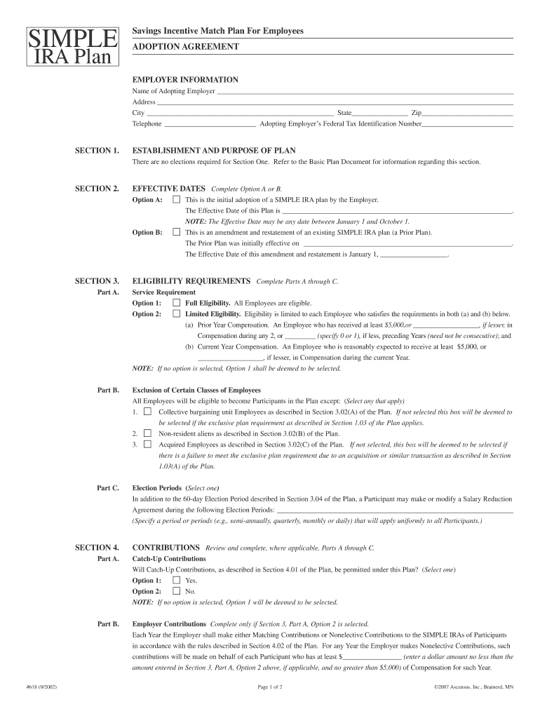 Get the free SIMPLE IRA Plan Adoption Agreement