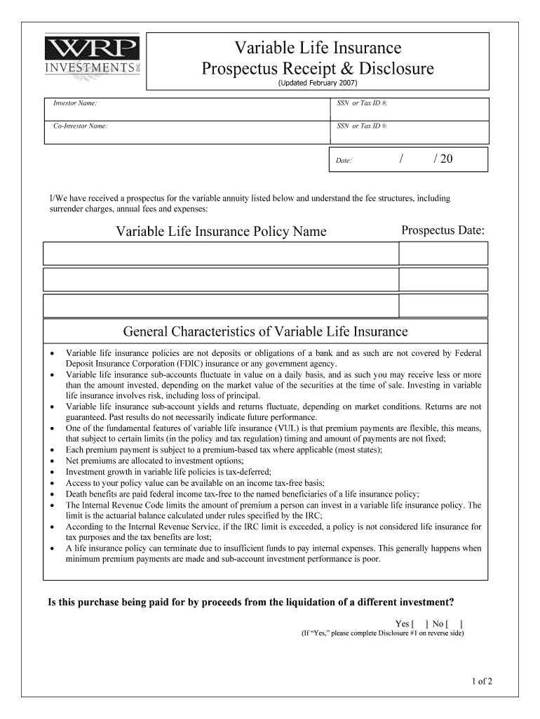 Who Needs the Variable Life Insurance Prospectus Receipt & Disclosure?