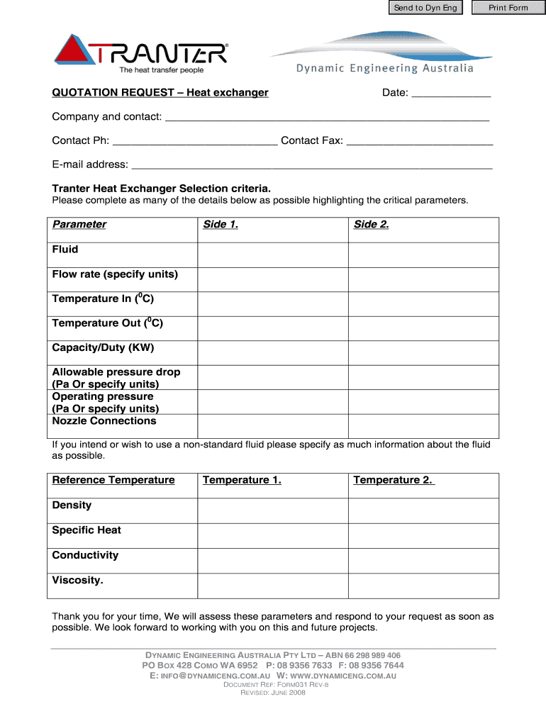 How to fill out heat exchanger quotation form