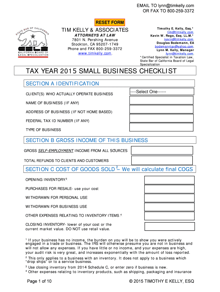 How to Fill Out the 2015 Small Business Tax Checklist Online (Step-by-Step)