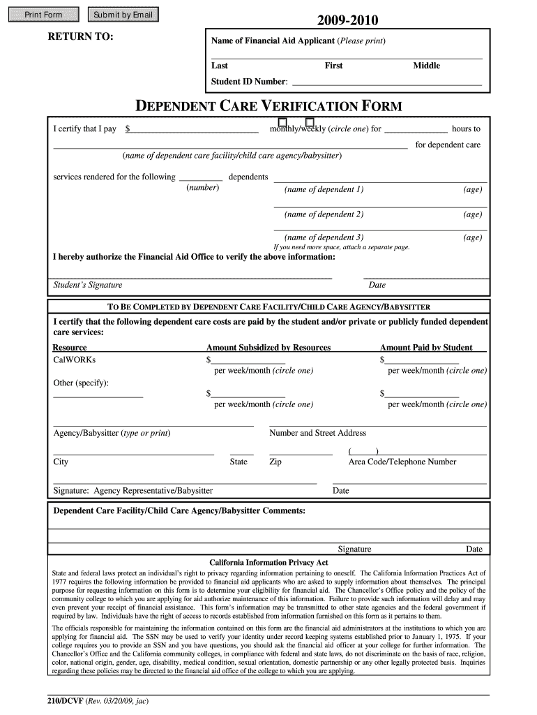 Students in California who are applying for financial aid and have incurred costs for dependent care need to complete this form to verify their claims.