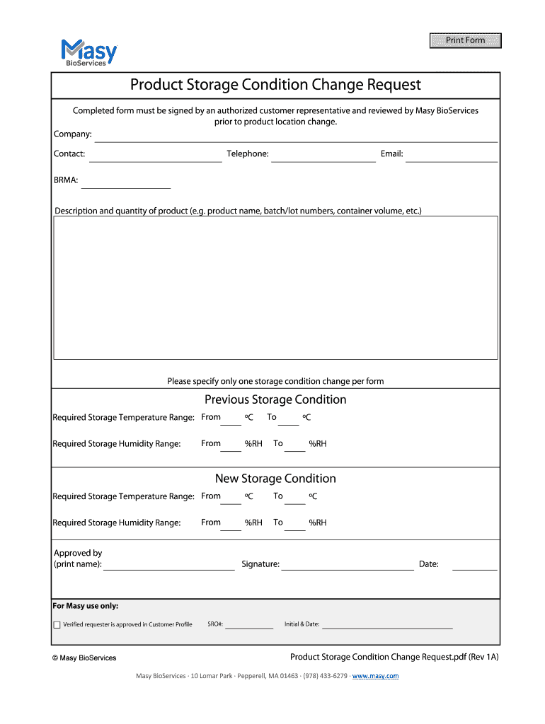 Get the free Product Storage Condition Change Request - Masy BioServices