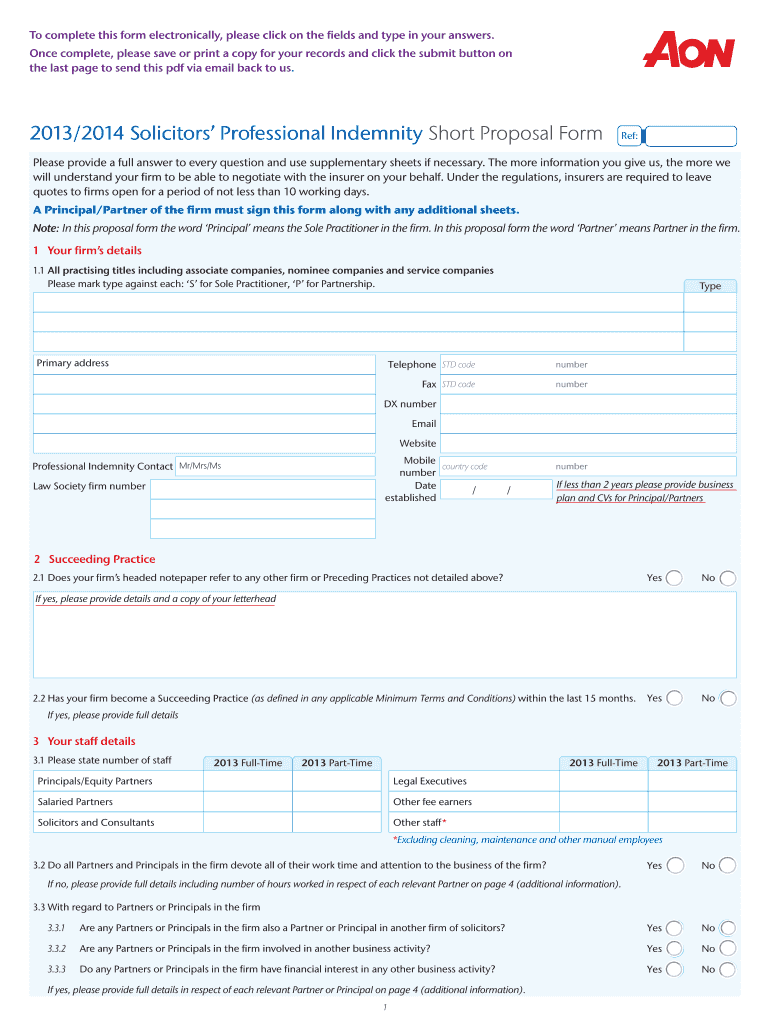 Get the free Solicitors’ Professional Indemnity Short Proposal Form