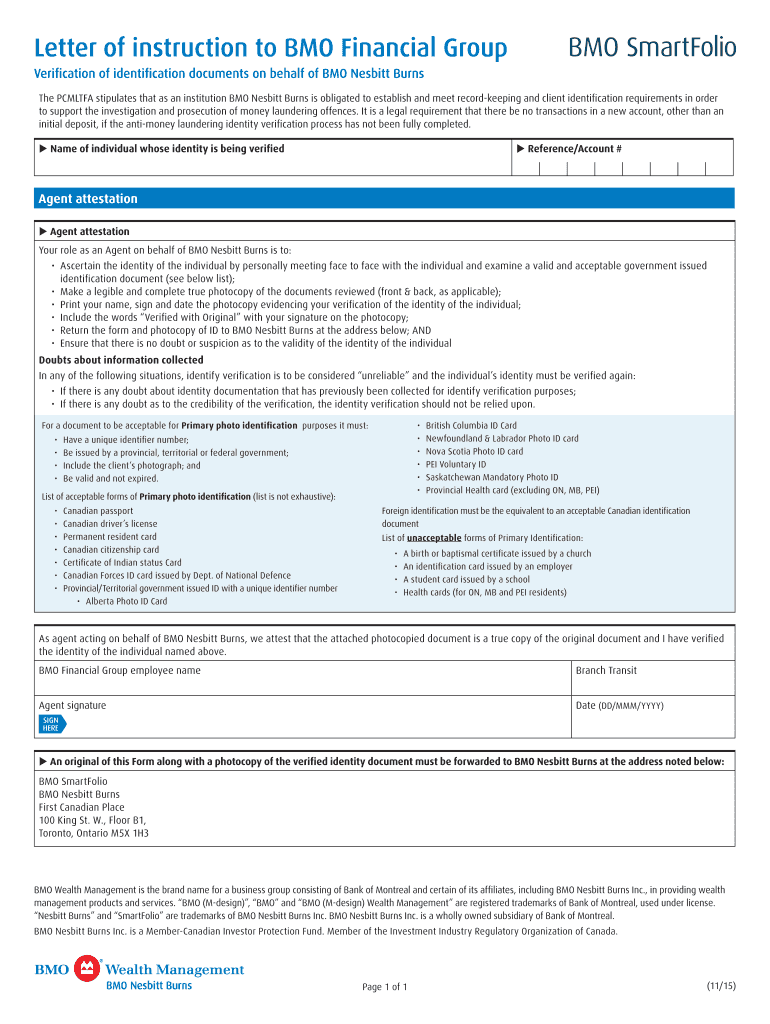 Get the free Verification of identification documents on behalf of BMO Nesbitt Burns