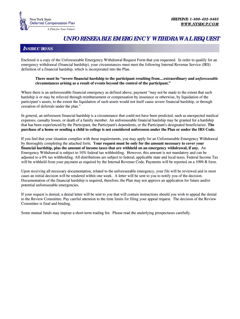 Get the free Unforeseeable Emergency Withdrawal Request Form