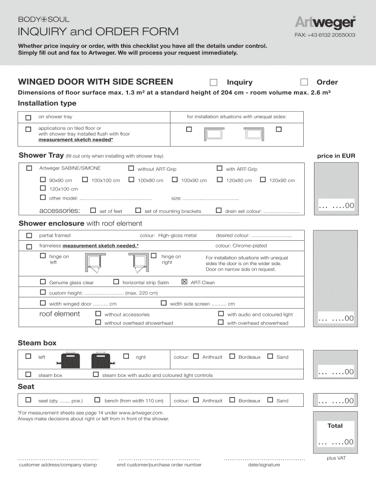 Get the free INQUIRY and ORDER FORM FAX: +43 6132 2055003 - artweger